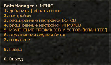 Удобный плагин для управления ботами. Полностью на русском языке( + Английский)